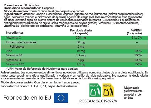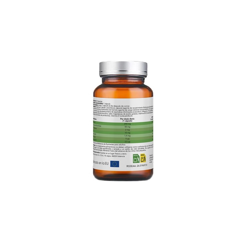 Complemento alimenticio a base de extracto de equinácea, zinc y vitaminas.